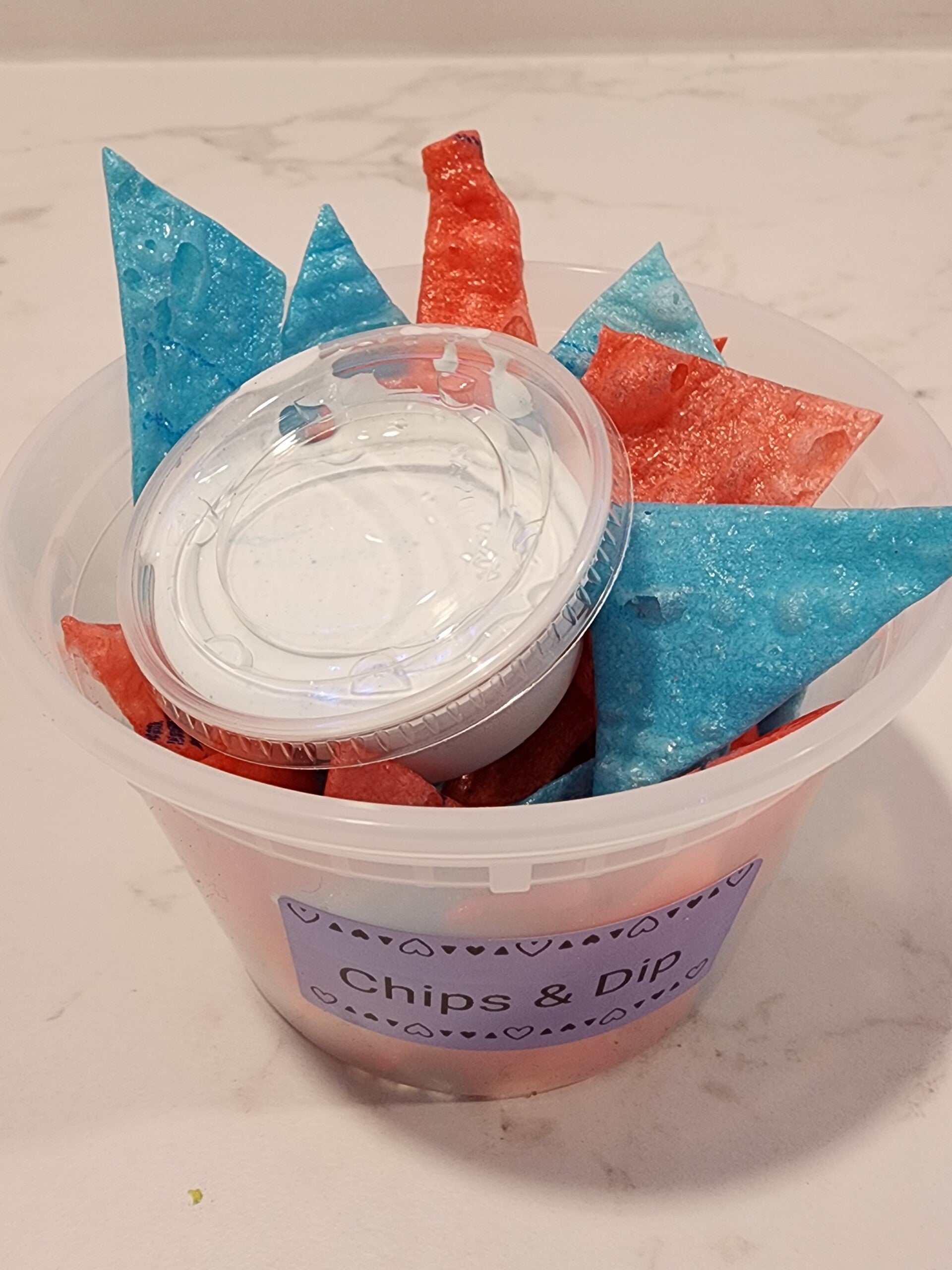 Freeze dried fruit roll ups chip style, and marshmallow dip (blue Hawaiian flavor)