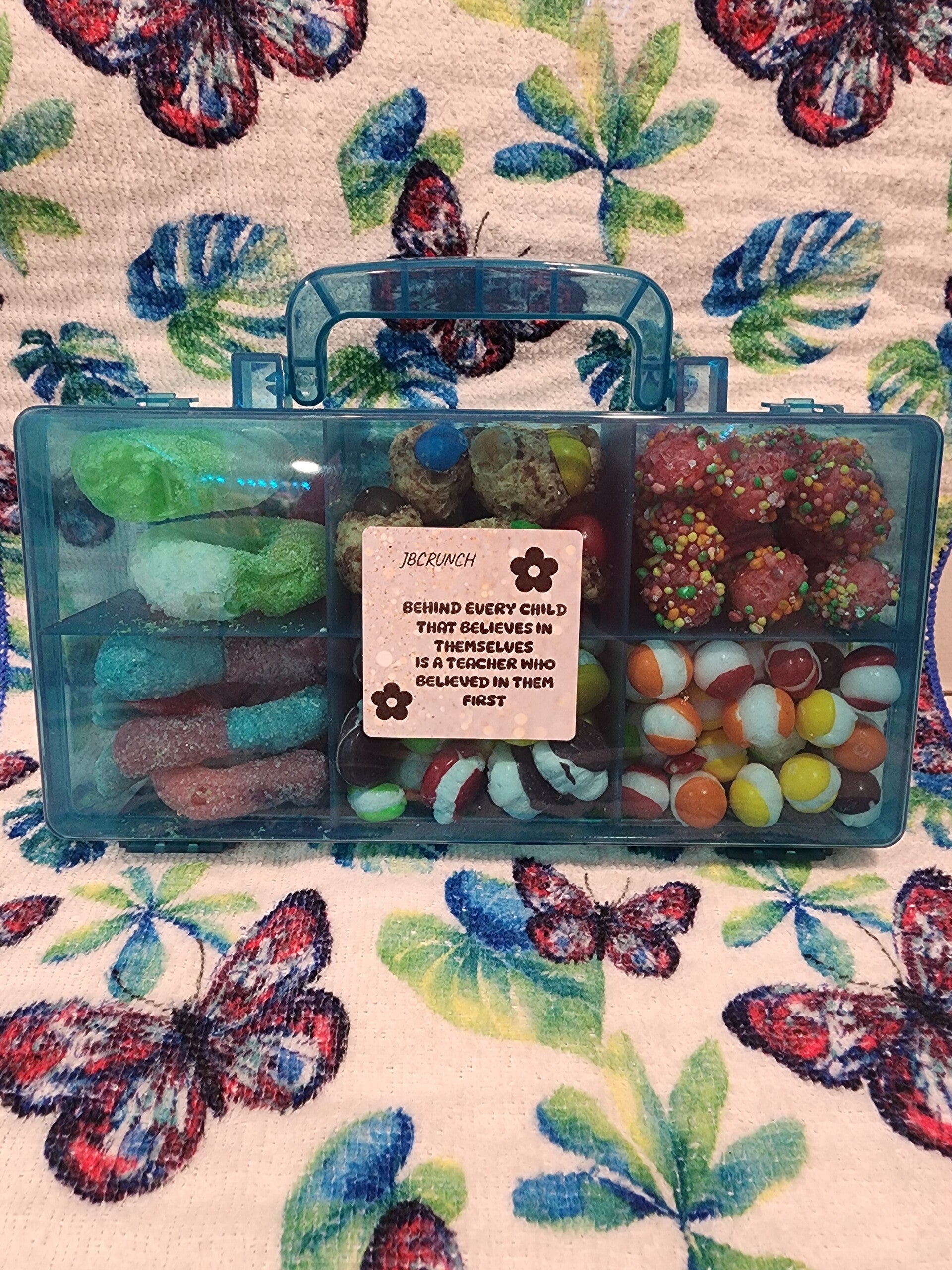Choose pink, blue or clear for your special teachers. 6 different candies 🍬