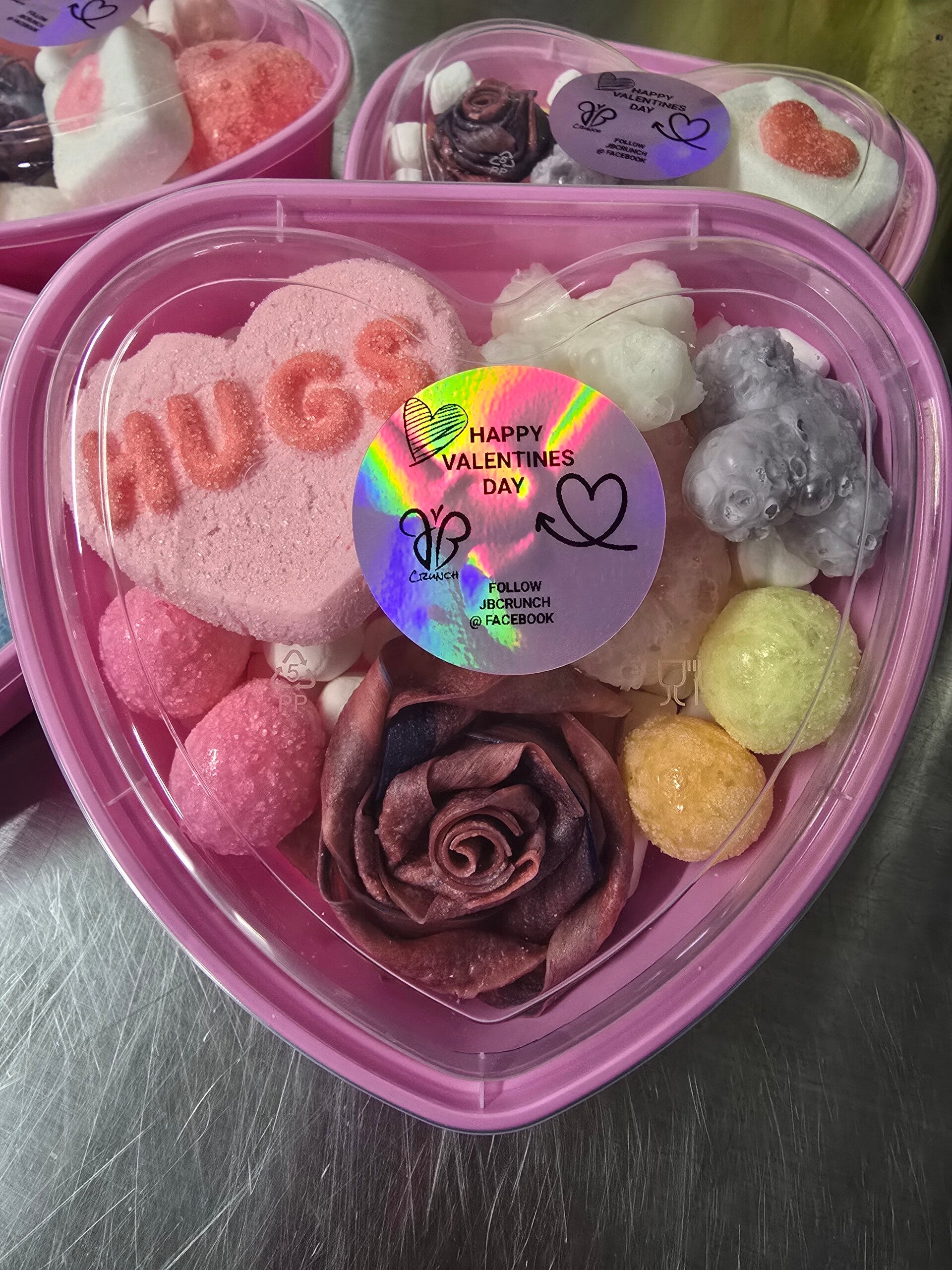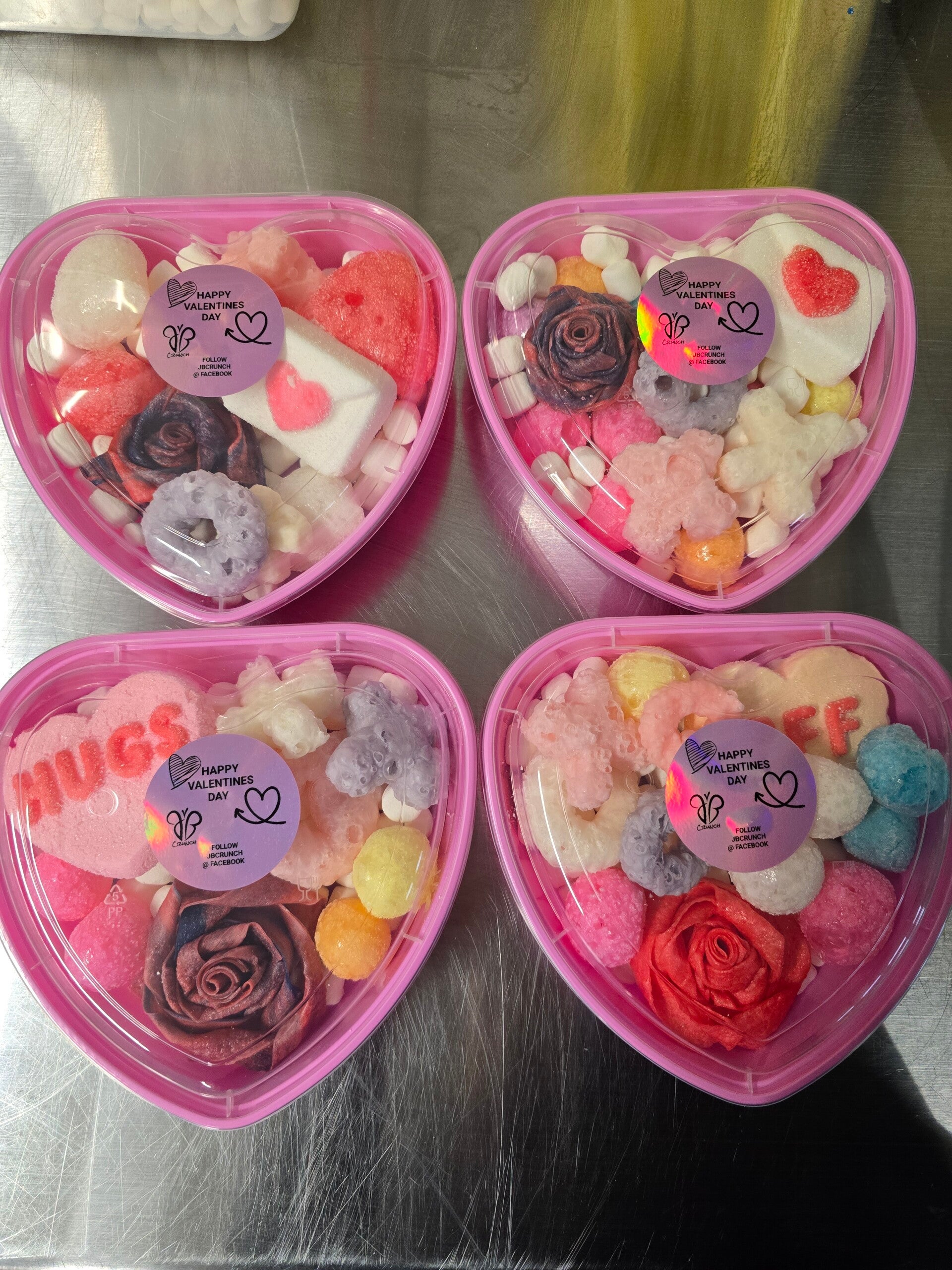 Filled with marshmallows, gummys, and fruit roll up rose. Delicious mix!