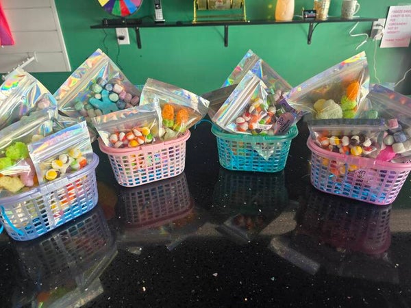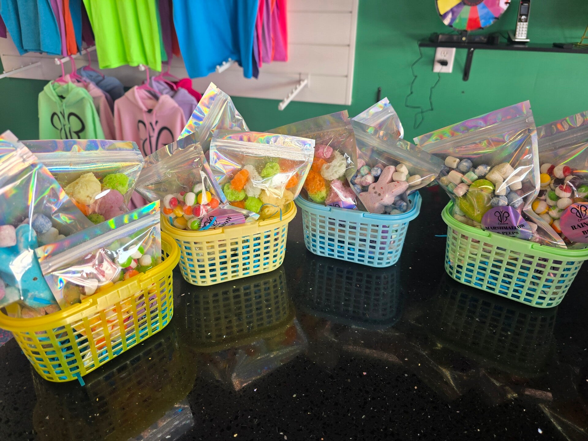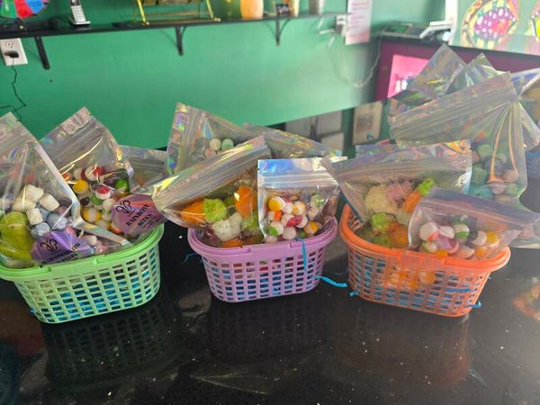 Rainbow Bites ,cotton tail (gummy) , Eggstra special (gummy), peep & marshmallows